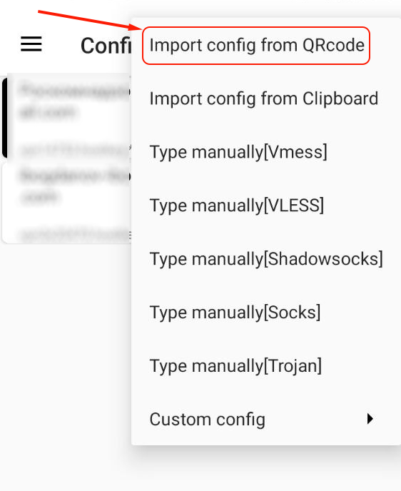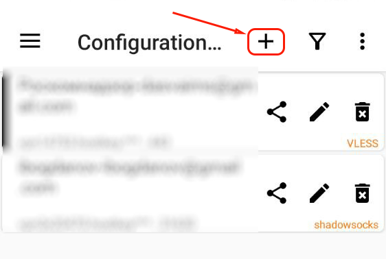 (Plus) button (it will allow you to add the configuration manually) or scan the QR code in the 3X-UI graphical panel: