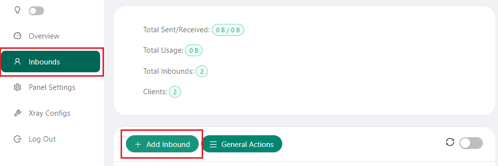 After logging into the 3X-UI panel, go to the Inbounds tab and click on the