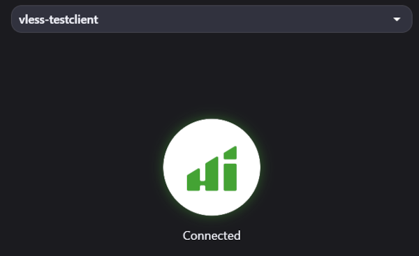 To connect to the 3X-UI, press the large round button. If the connection is successful, the icon will turn green and display Connected. Disconnecting is done in the same way by clicking the button.
